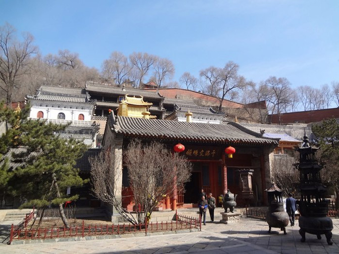 五台山最大的黄教寺庙(藏传格鲁派),也叫真容院清朝皇家寺庙,来过皇帝和西藏宗教领袖,藏区和内蒙的信众很多。从黛螺顶下山,过桥,过马路,从一条小路走上去。还不清楚就问人。