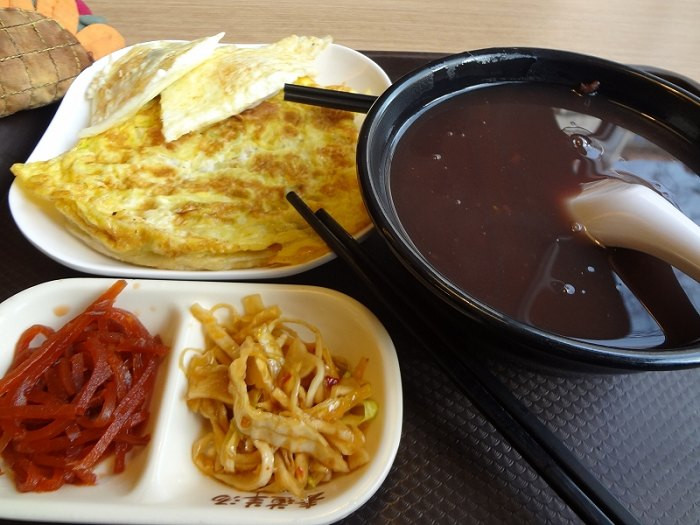 北方的小咸菜,大头菜和凉拌卷心菜。各种粥+蛋饼,吃的很舒服的早饭。