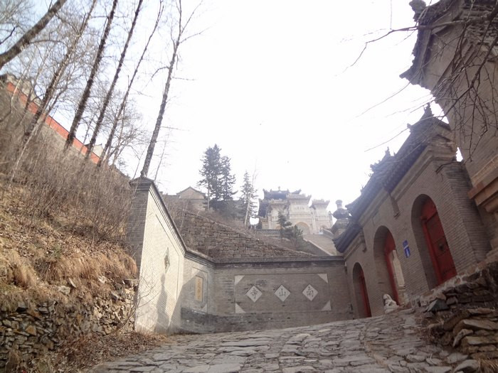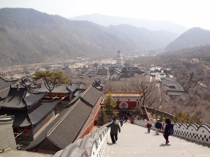 108节台阶,其实黛螺顶就在之前的塔院寺和显通寺以北的上方,看下面的白塔。