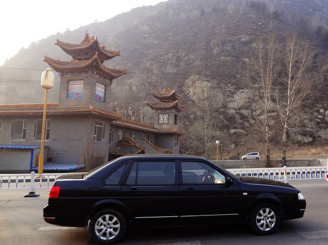 暮色中的五台山,山谷中还能依稀看到一些残雪。下山回酒店时,搭了一位师父的顺风~