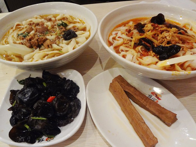 太原一家叫“顺溜”的连锁面馆,两碗面,14元,量足,口味偏咸。