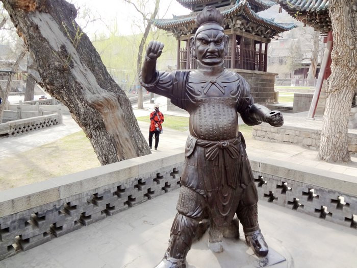 这样的铁人一共4个,三个宋代的,一个民国仿制的。图中的铁人是宋代的,也是最好的一个。游客喜欢摸摸他的肚皮,踩踩他的脚,肚皮上的一些字,已经被摸平了。