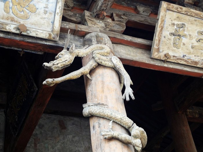 还有很多清代的匾额,光绪帝的,慈禧太后的。那条龙,伸出两个指头,耶。