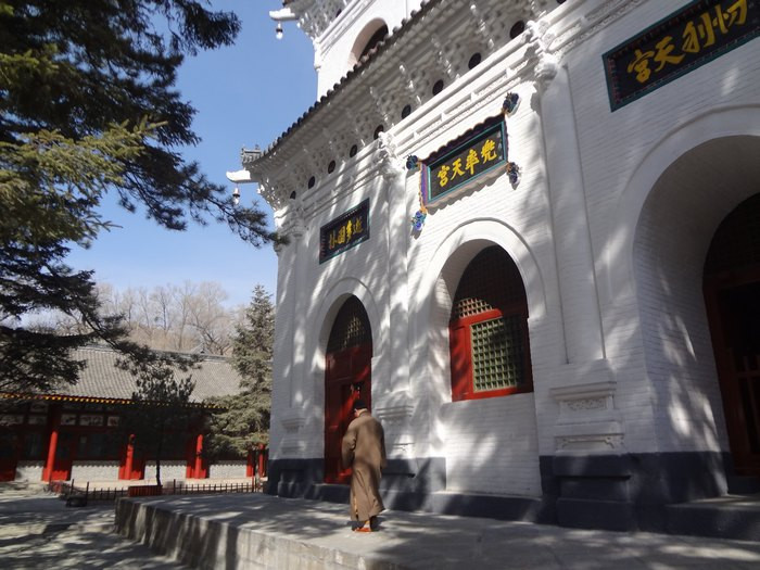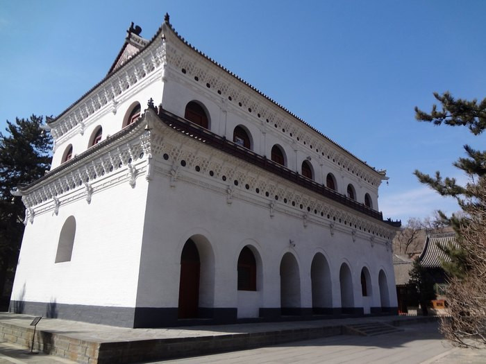 纯砖结构的无量殿,殿中有佛塔,白色的外墙很少见。