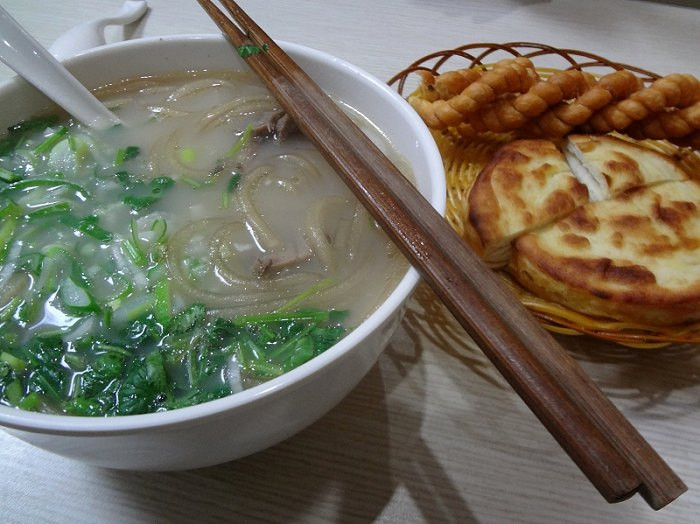 五台山,友谊宾馆的莜面栲栳栳、老豆腐汤、藕饼夹肉。