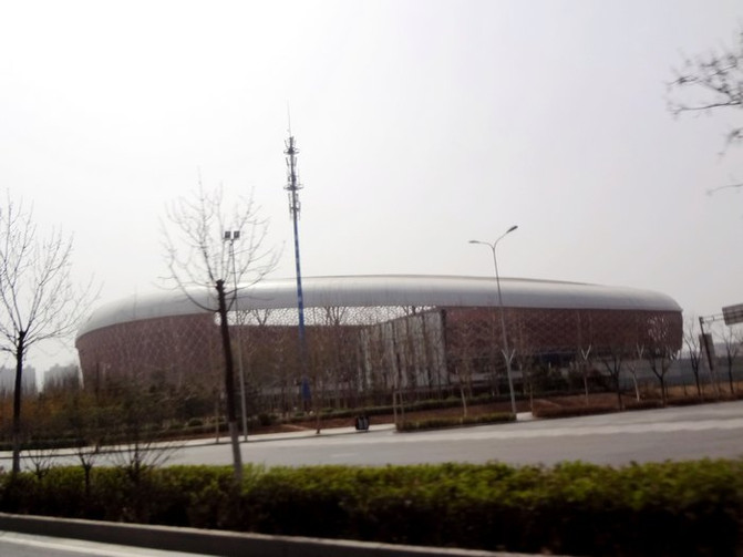 去晋祠的路上,山西体育中心,司机师傅说,这个是太原鸟巢。车太快,照片糊了。