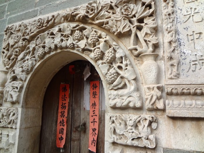 随处一望,不经意的一个小屋,就能看到精致石刻。