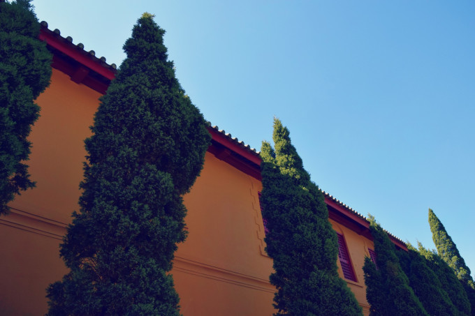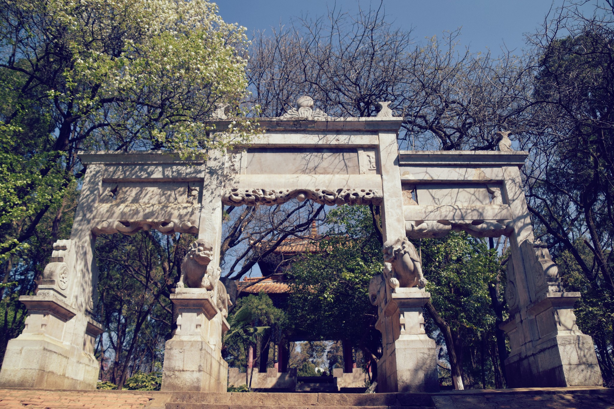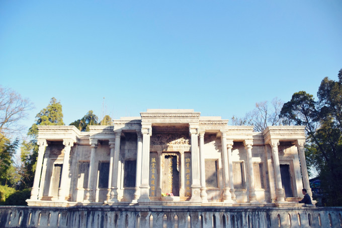 越过樱花道,就差不多到山顶了,山坡南侧主要是历史文化建筑群,其中最主要的建筑为唐继尧墓。