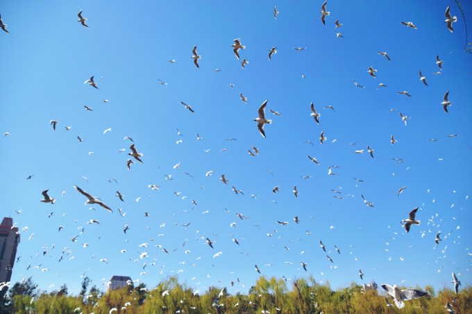 在城市中心难得有这样一汪水,这里不但游人如织,海鸥们也都聚集在这里等着人们投喂(吃饱才有力气飞回北方呀)