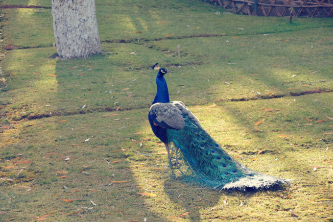 孔雀园里的孔雀都是放养的,满地跑,也不怕人(我觉得反倒是人怕它们)。