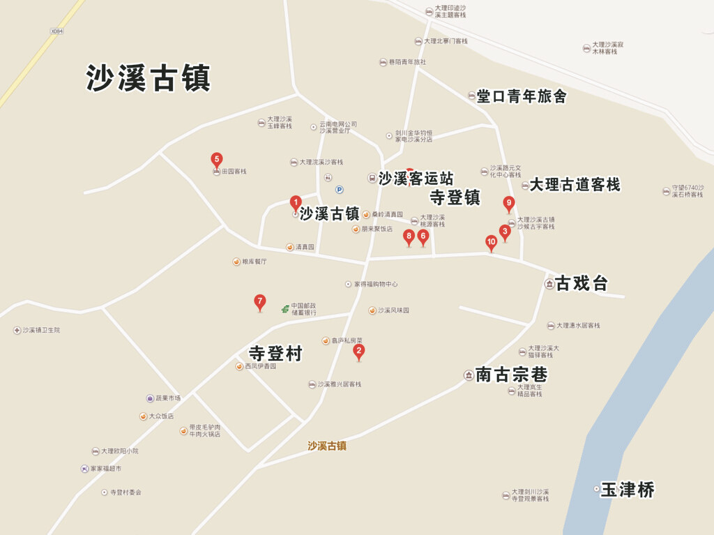 ① 兴教寺—四方街—古戏台—茶马古道陈列馆—古寨门—玉津桥—欧阳大院—赵育华家—沙登箐—狮子关—石钟寺—