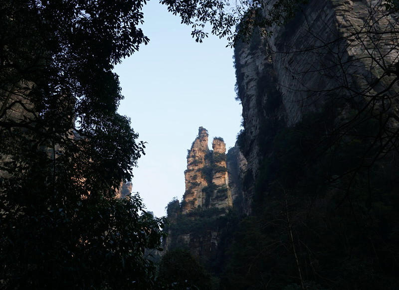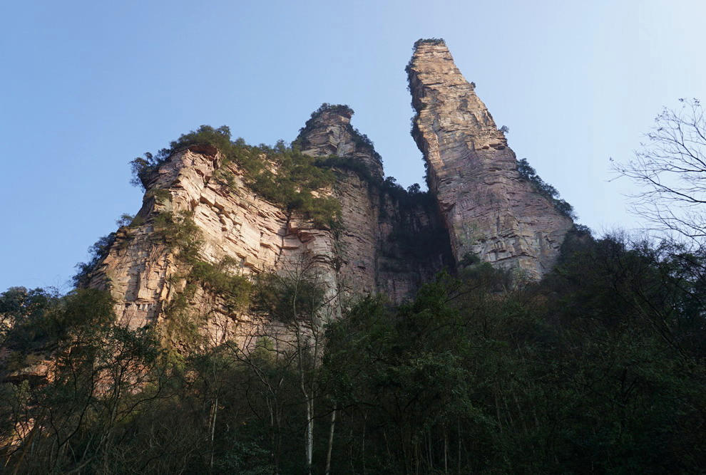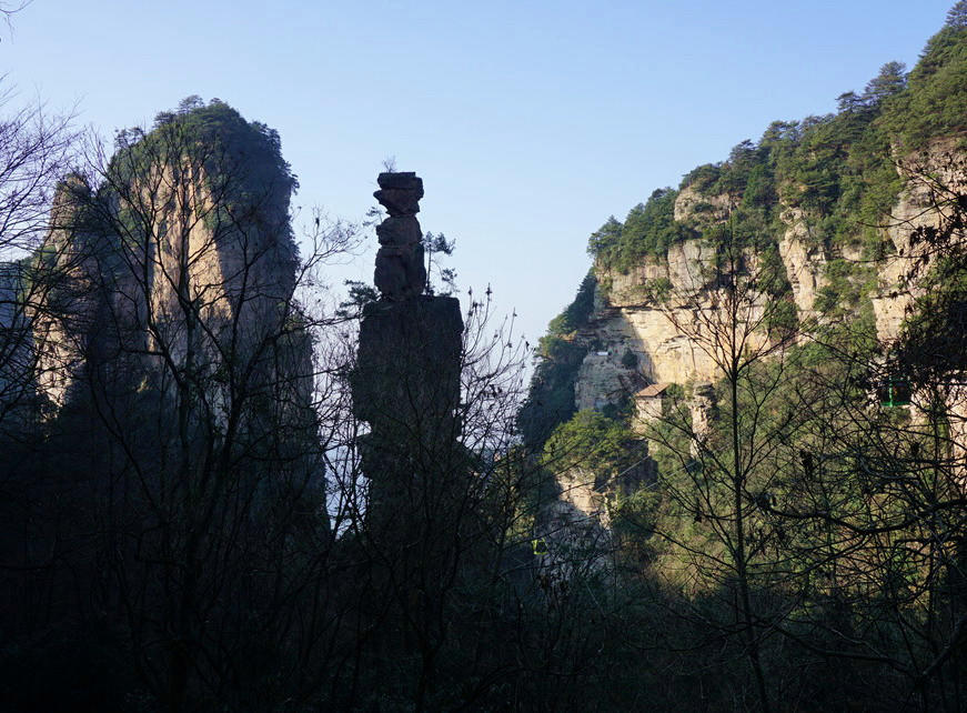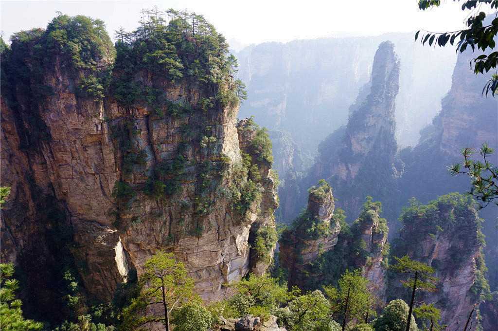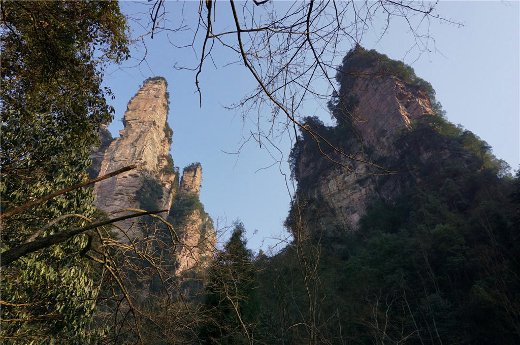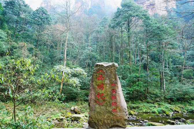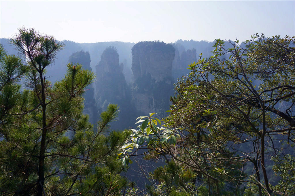 离开寨子进入观景正题,时间已是九点多,阳光并没有影响到拍照,袁家界是 武陵源 景区的核心所在,特别经过 美国 科幻电影《阿凡达》拍摄取样之后更是名声远扬,它最独具特色的地方就是那一整片岩顶平台,以及由高耸、分割林立的砂岩 石柱 群所汇成的峰丛,游人至此只见山移峰浅,常不知身在何处,故有“迷魂台”之美誉