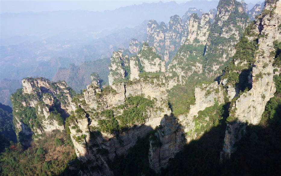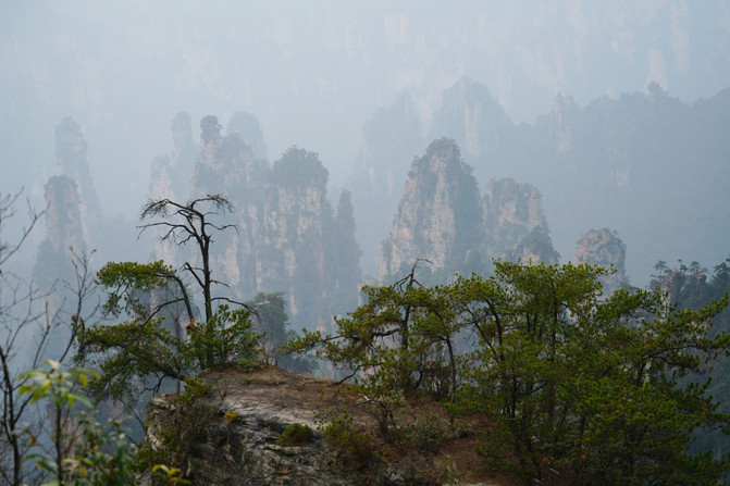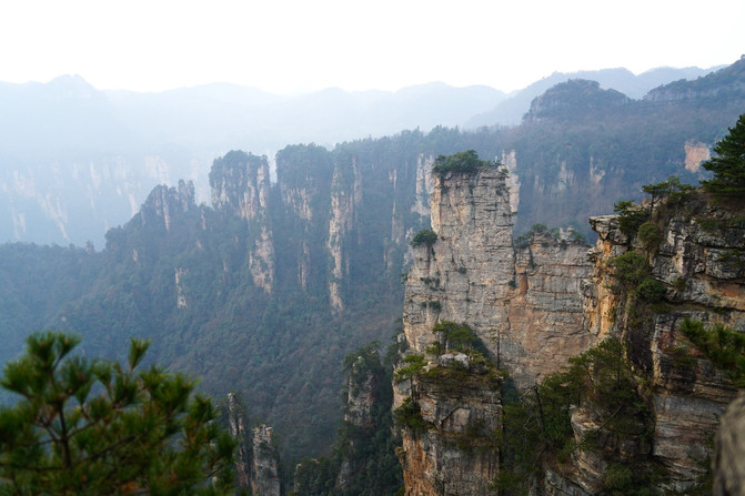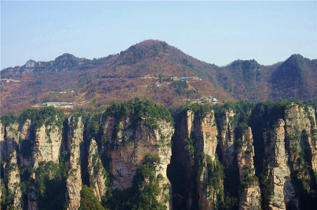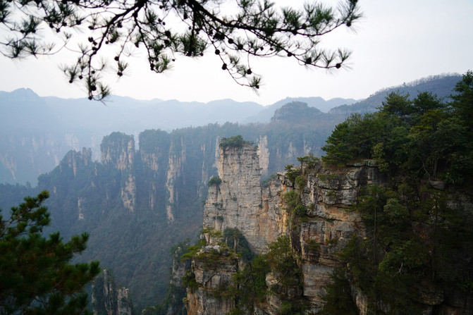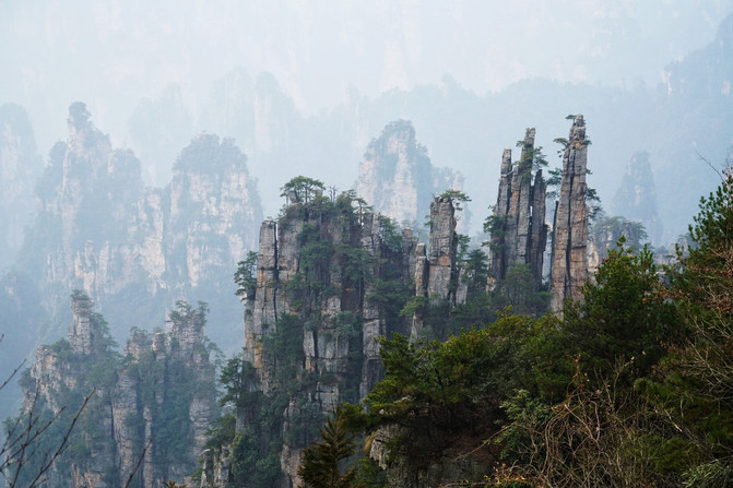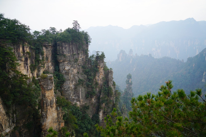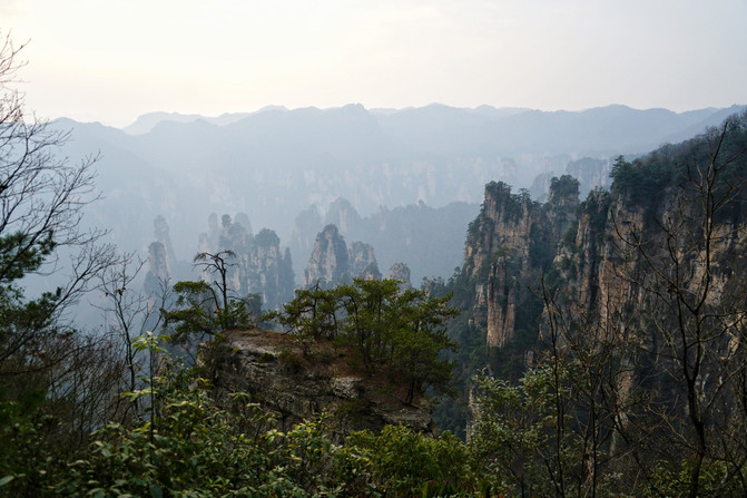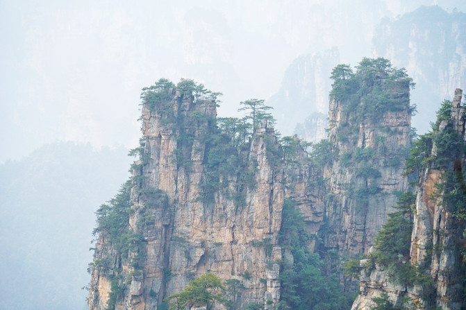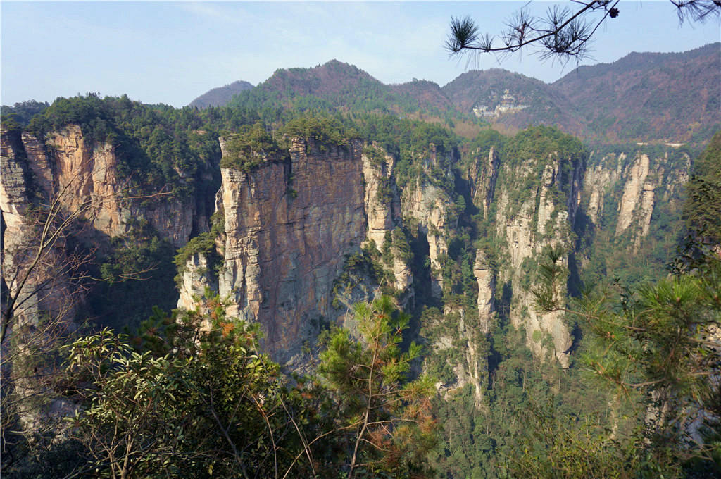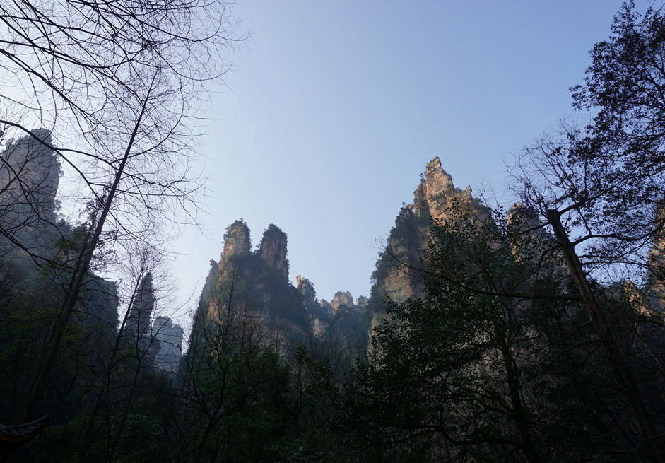 离开寨子进入观景正题,时间已是九点多,阳光并没有影响到拍照,袁家界是 武陵源 景区的核心所在,特别经过 美国 科幻电影《阿凡达》拍摄取样之后更是名声远扬,它最独具特色的地方就是那一整片岩顶平台,以及由高耸、分割林立的砂岩 石柱 群所汇成的峰丛,游人至此只见山移峰浅,常不知身在何处,故有“迷魂台”之美誉