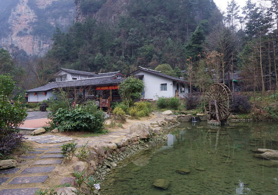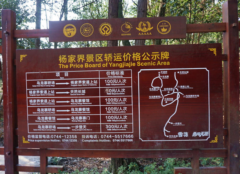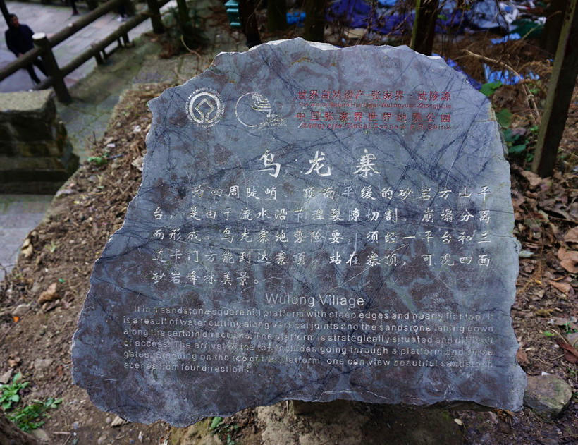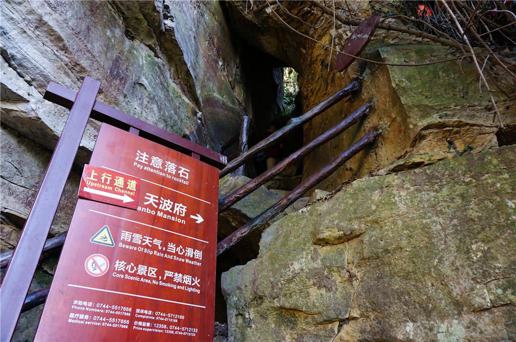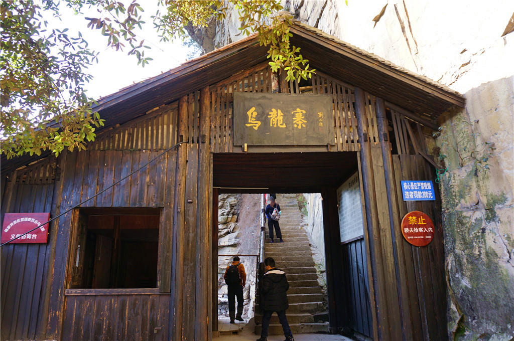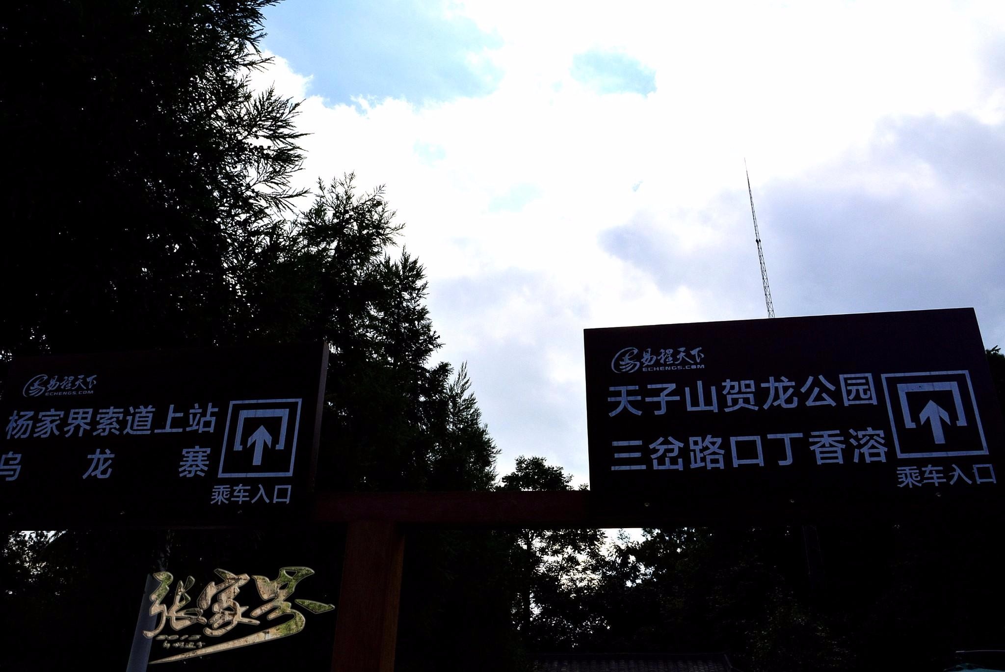 乌龙寨路口,左转去一步登天和空中走廊,右转去乌龙寨天波府。我们先去乌龙寨天波府。
