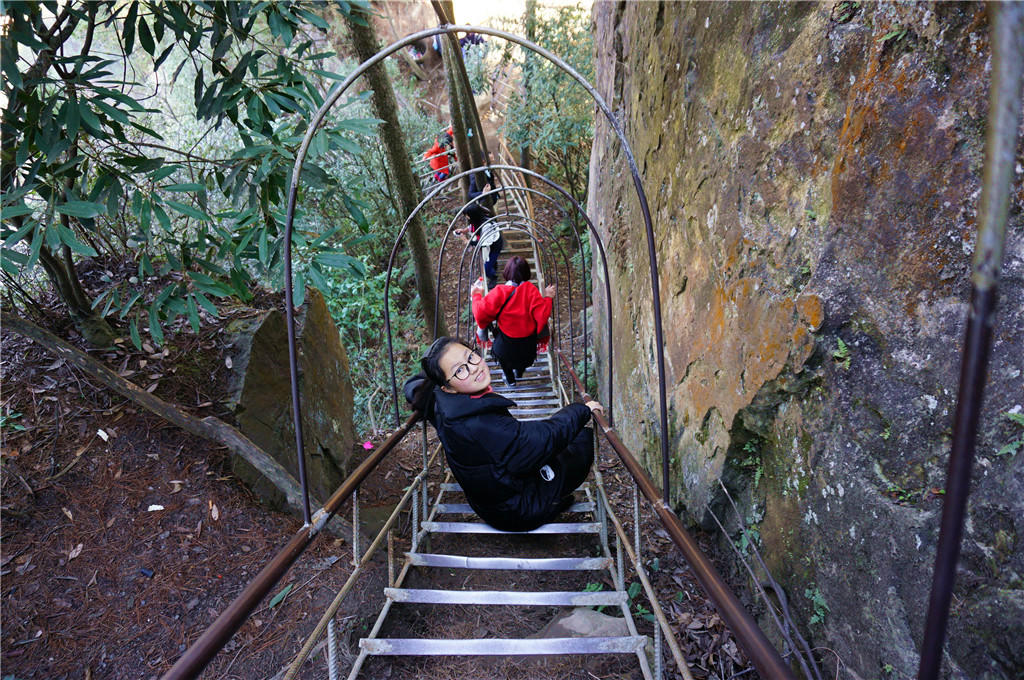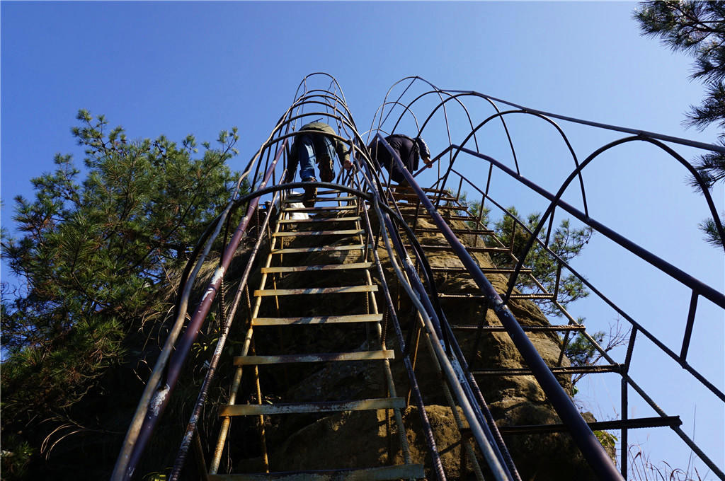 上天波府必须攀援近似90度的铁梯。难度倒也不大,而且分左右两侧,不至于堵车。