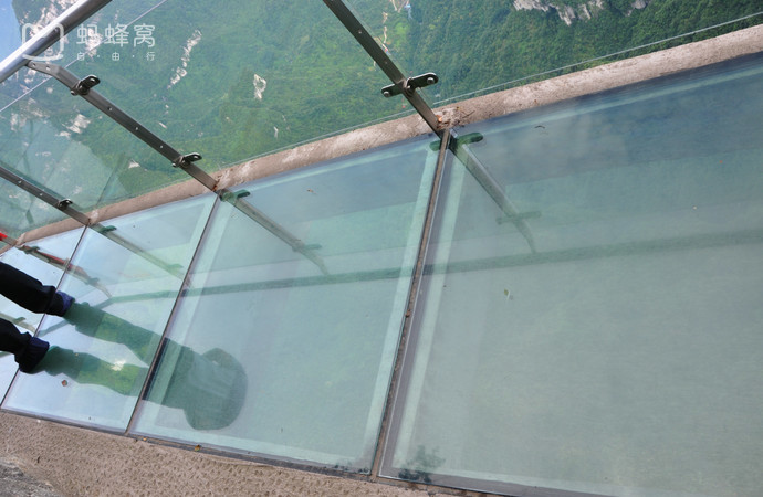 为了让游客零瑕疵的透过玻璃桥看到美丽的风景,上桥的游客均要求戴上鞋套,以保持玻璃桥的透明和干净。玻璃栈道的刺激震撼,可与举世闻名的 美国 大峡谷玻璃走廊“天空之路”媲美