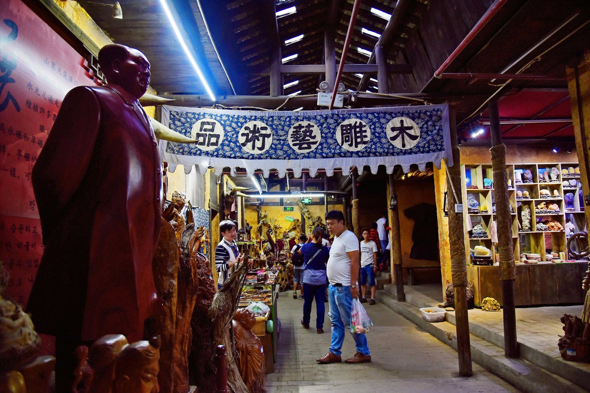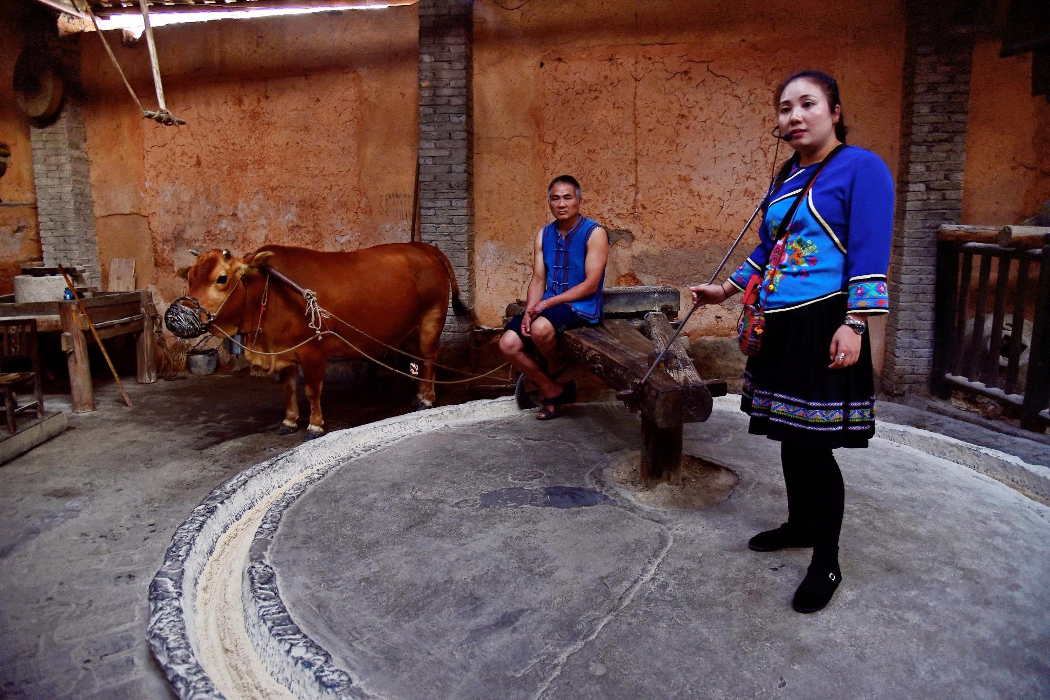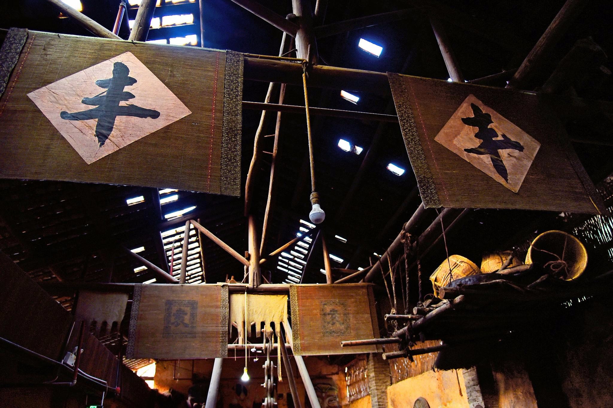 接下来又是一段土家人风俗文化的展示区,不过比起一开始的区域要明亮畅快多了,主要展示了土家族的木雕、织绣艺术、以及最原始的磨米、榨油、酿酒技术,有兴趣的还可以亲身体验一把