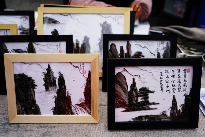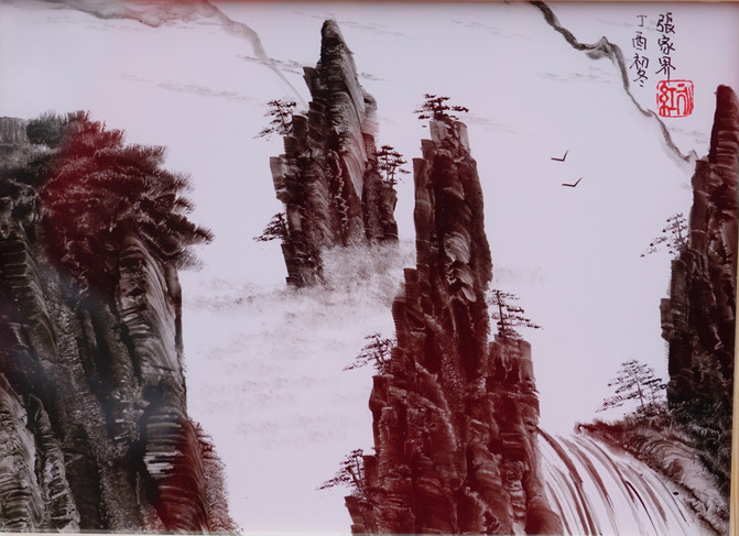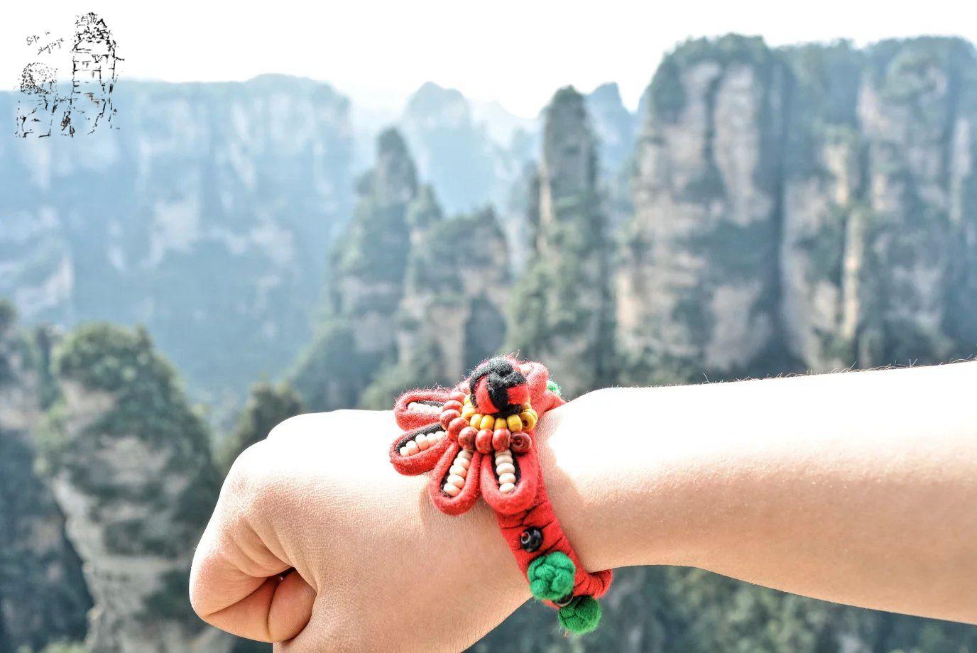 在天女散花景点的平 台山 ,还有一家售卖手指画的店铺,寥寥几下,就把天子山各个景点的云海仙境描绘在纸上,我觉得很特别,就买了一幅带回家。