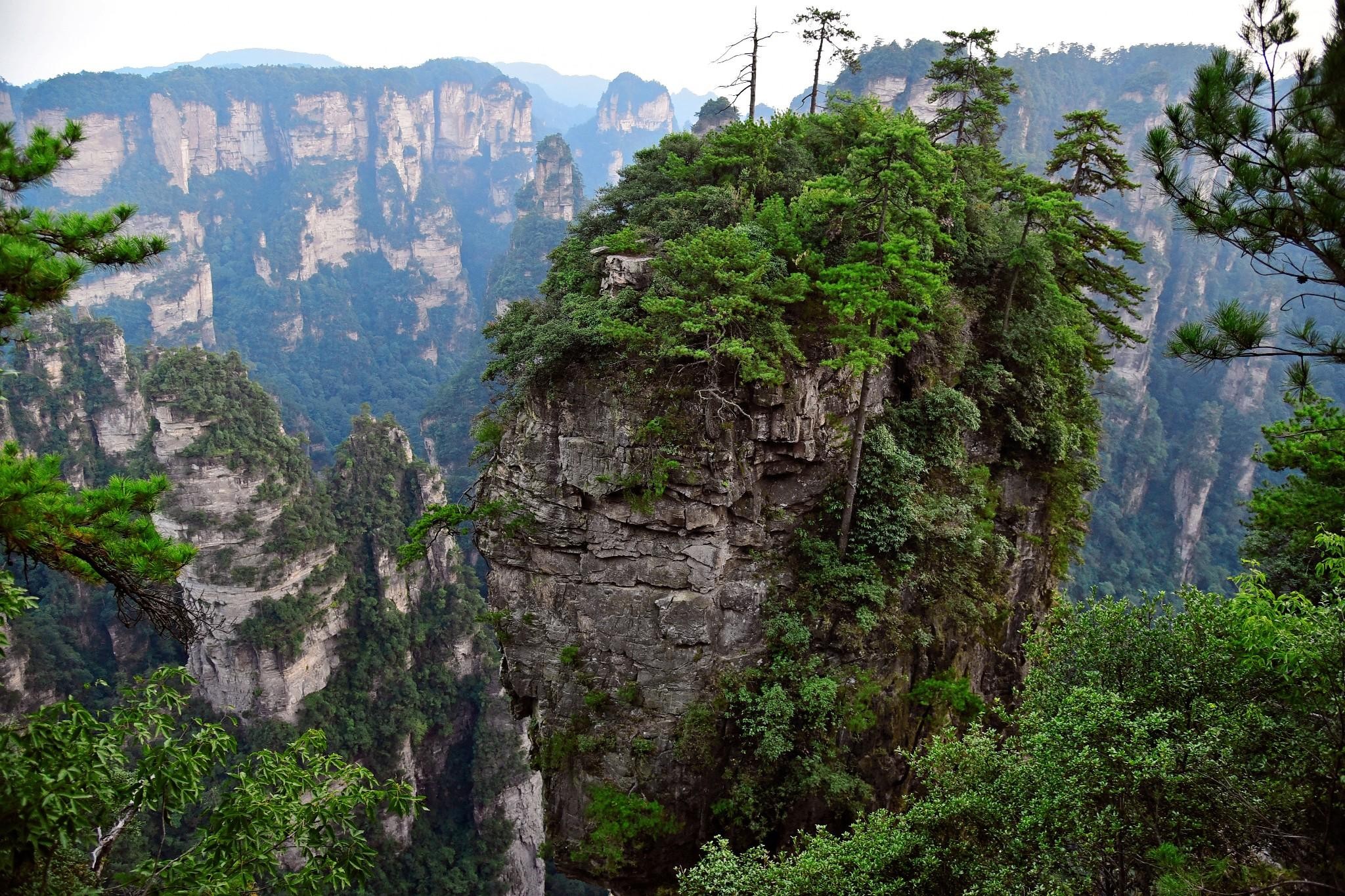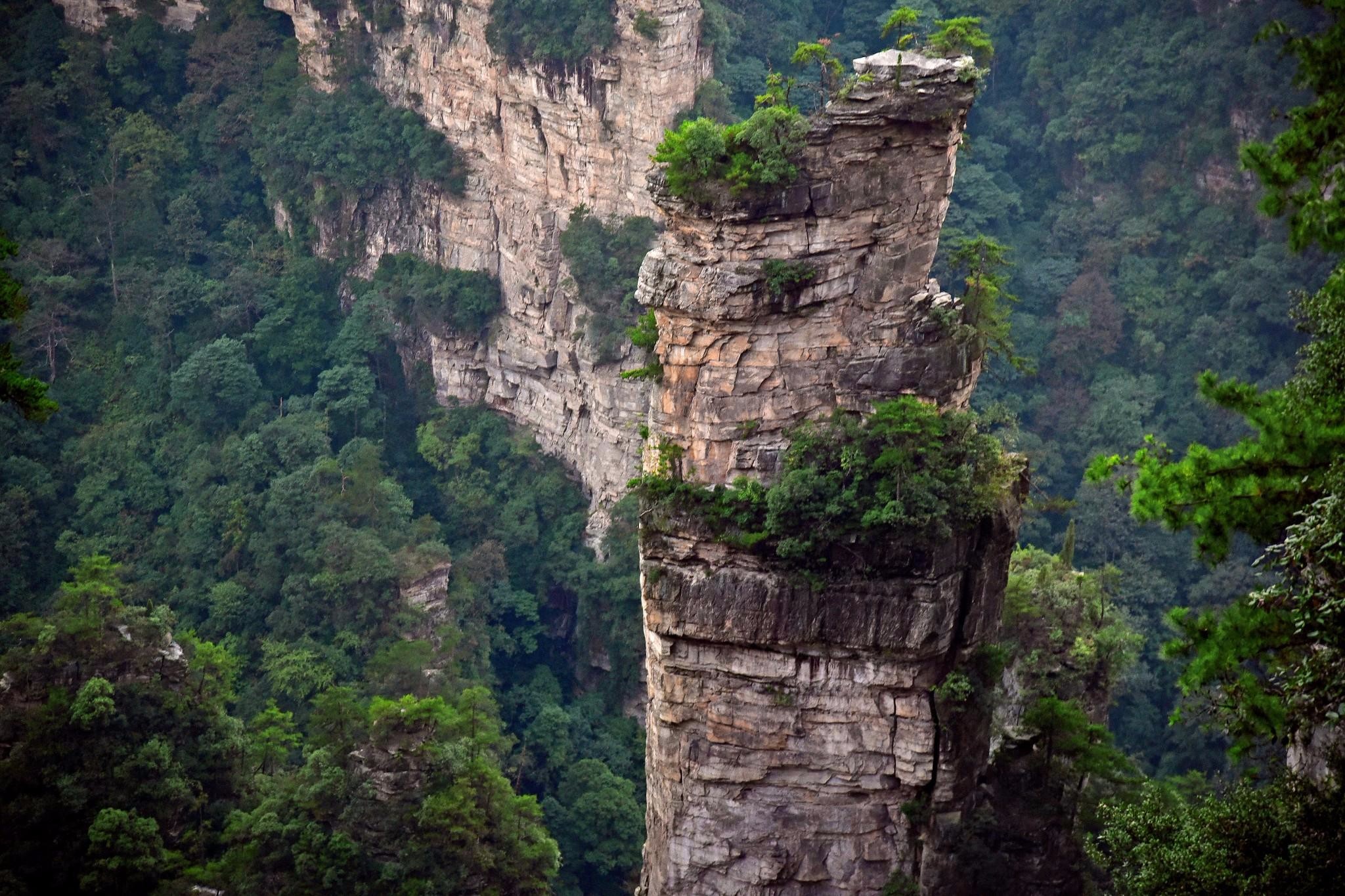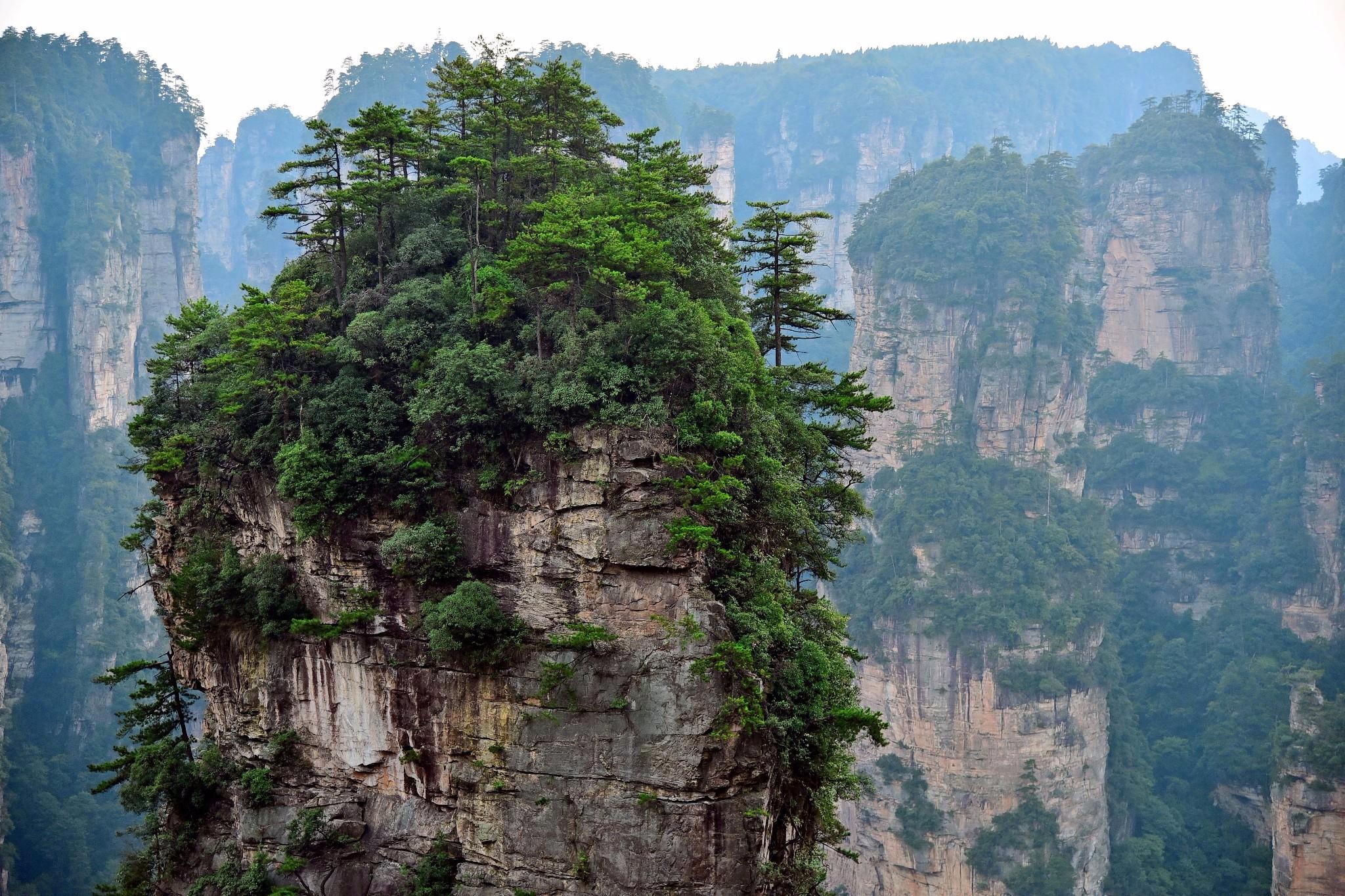 峰丛中有一座垂直高度约150米的“南天一柱”格外引人注目,它的顶部植被郁郁葱葱,峰体造型奇特,垂直节理切割明显,仿若刀劈斧削般巍巍屹立于袁家界,有顶天立地之势,故又被称为“乾坤柱”,这也即是《阿凡达》潘多拉星球中 大名 鼎鼎的悬 浮山 原型了 祖国大好风景走向世界本是好事一件,然而 张家界 景区管委会居然借势在2010年将好端端的乾坤柱改名成为“哈利路亚山”,对此我不仅鄙视甚至气愤,理由自不必多说,真是又土鳖又媚外(还是忍不住说了)。。