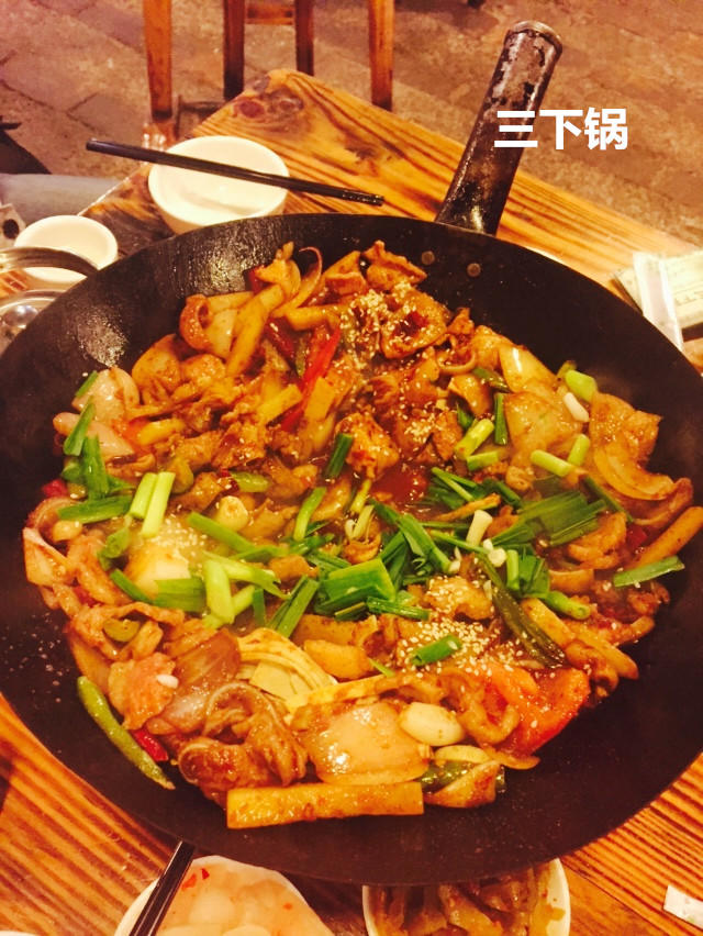 农家三下锅: 张家界 普遍都是三下锅,几乎每个餐厅都会有,三种材料可自选。在 张家界 吃了很多家,包括溪布街的【乌龙山寨】【乡念】【土家阿妹】和 天门 山附近的【富正毅三下锅】都还不错。三下锅的来历之前已经介绍过了,就不在啰嗦