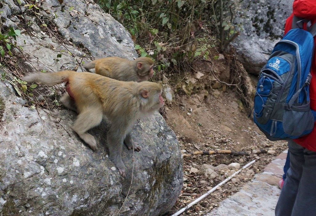5.经过猴区时书包背牢些,带子扎紧些,不要打手机,玩镜子,相机拿稳点。