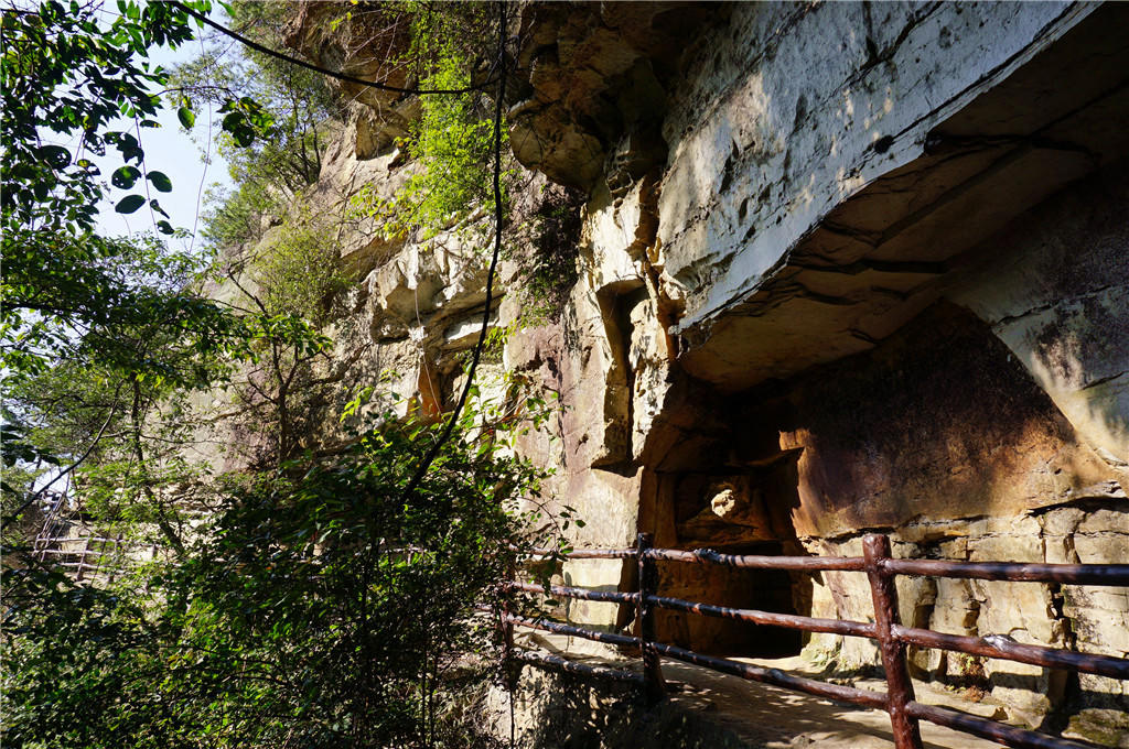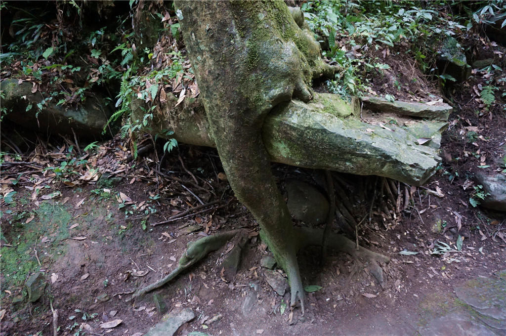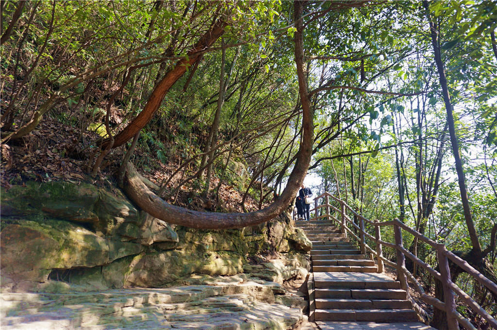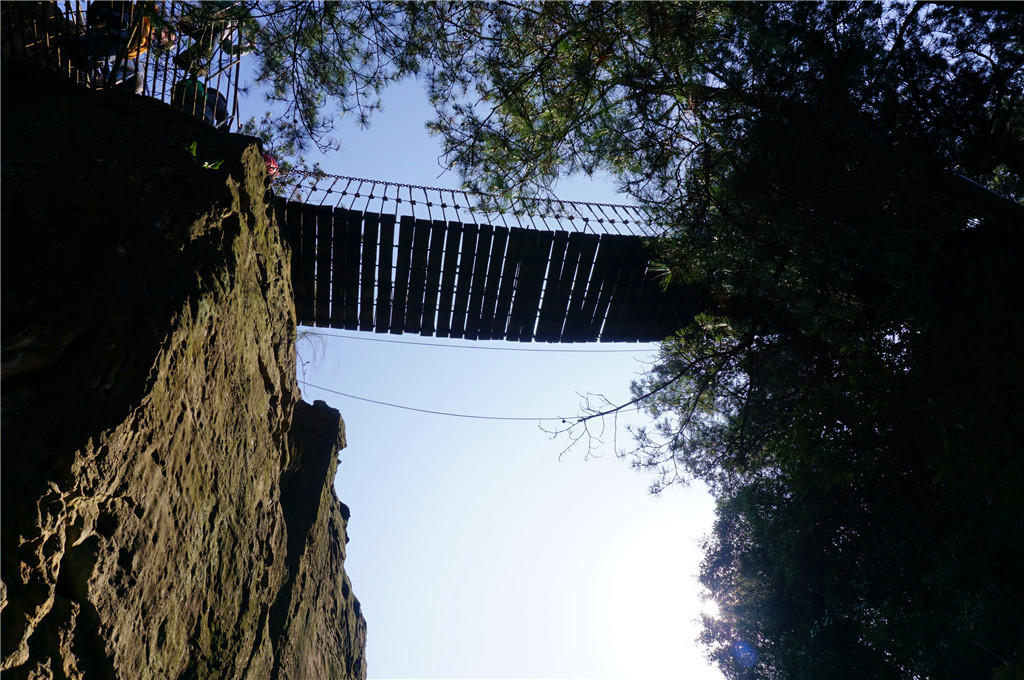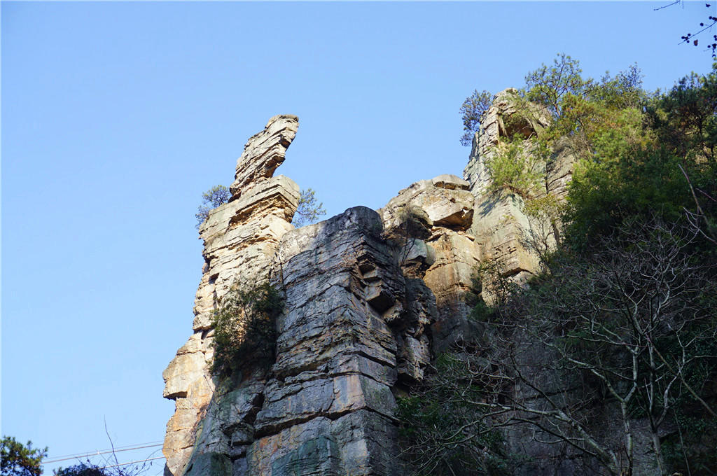 天然长城观景台往返约20分钟,从索道上站右前方下台阶回到主游道,再往下走台阶去乌龙寨。途中可见金鸡报晓,只不过这个时候是逆光。