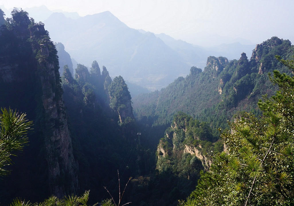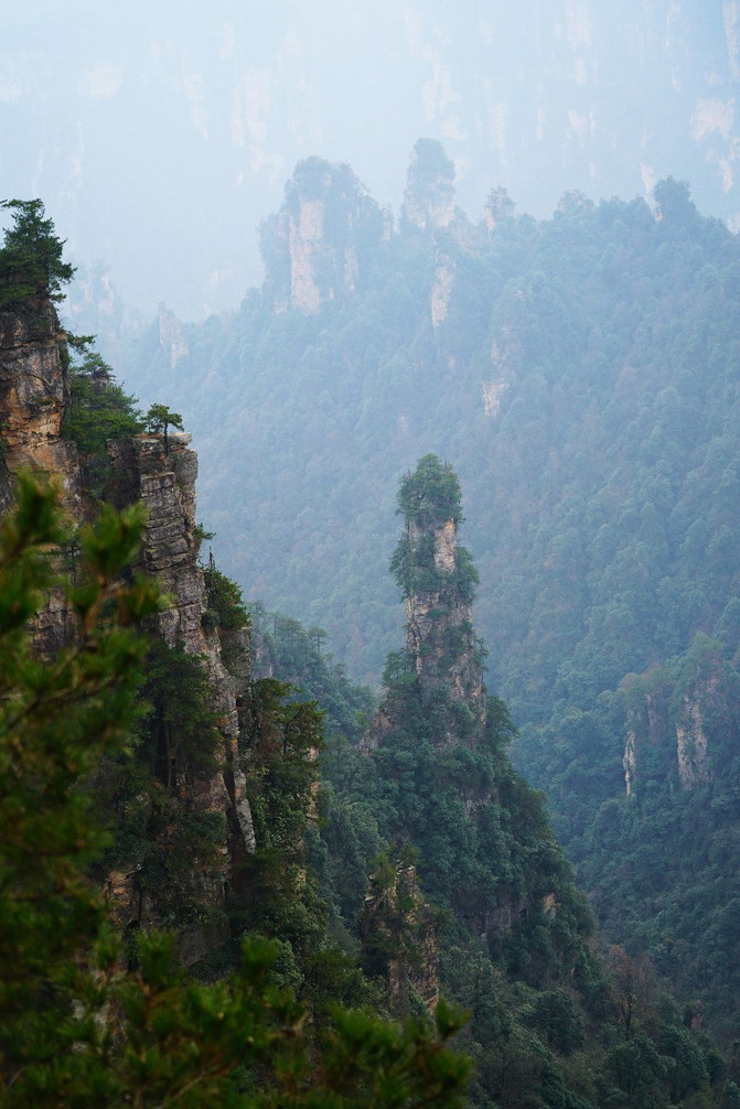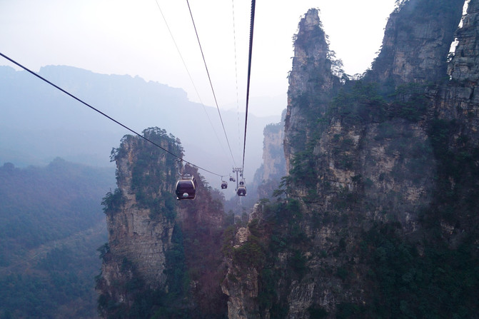 从天子山索道下山,穿行于天子山的巍巍群山,渺渺云海中,似乎自己也幻化成了仙境中的一道风景。