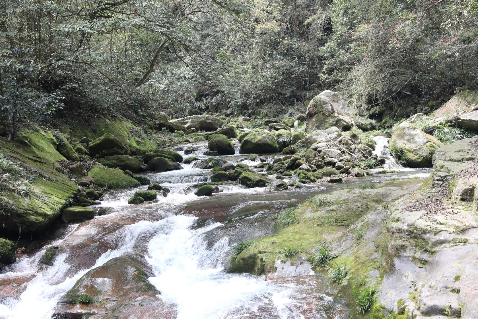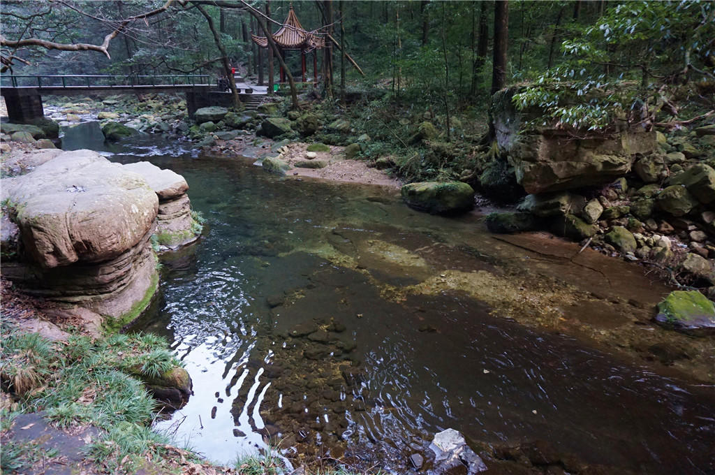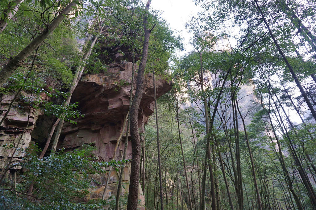 开始步入金鞭溪游道,树木参天,将山石掩映起来。