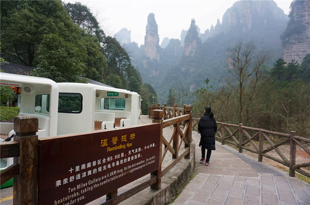 张家界 徒步景点:景区内除了外部环保车,最重要的交通工具莫过于我们的一双腿了,一些景点可以环保车抵达,但还有一些景点需要我们全程徒步步行,还是请量力而行有些地方是有索道代步的。