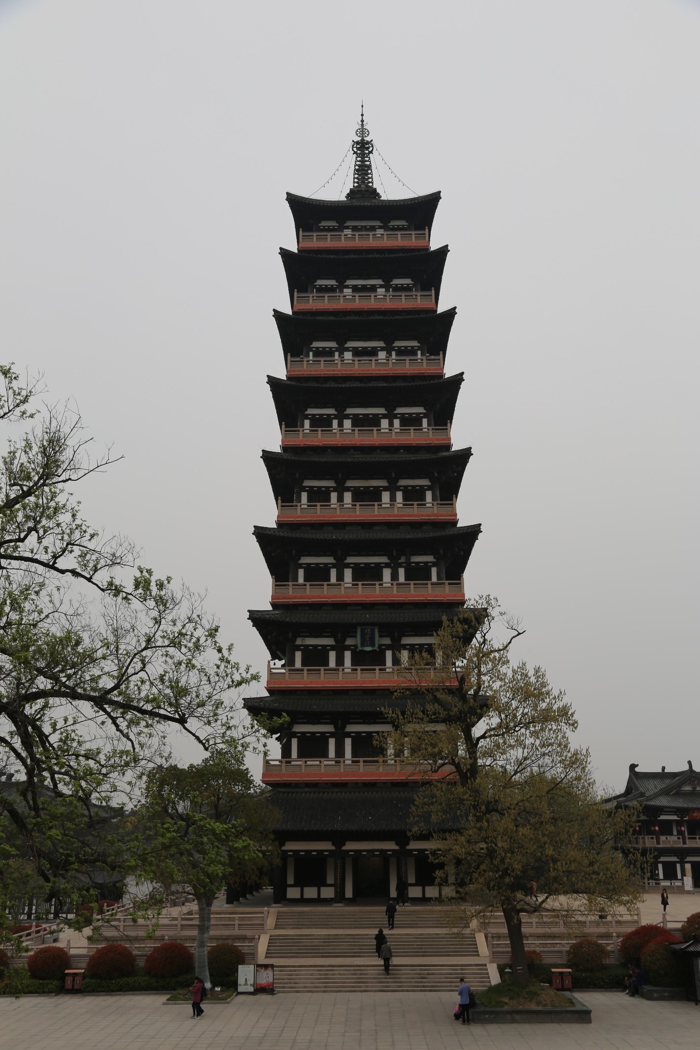 寺内最出名的是栖灵塔,塔高9层,里面供奉着舍利子和一尊楠木佛塔。 爬到塔顶则可俯看整个大明寺,远眺瘦西湖与 扬州 城景色。