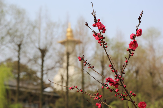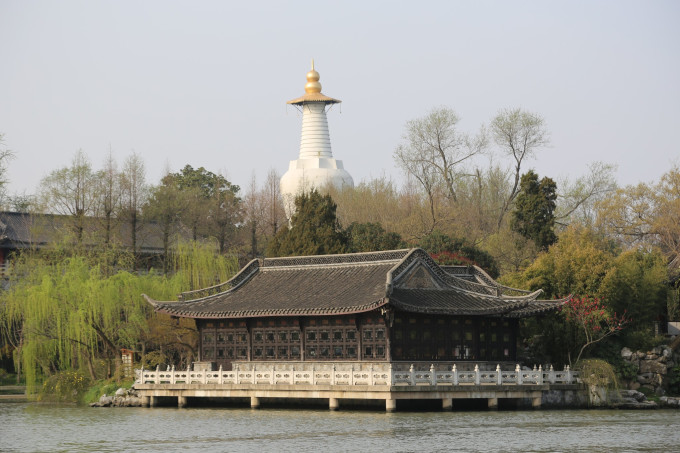 白塔,是 北京 北海 白塔的仿制品,不过来到南方后明显的瘦身了,显得更加轻灵。