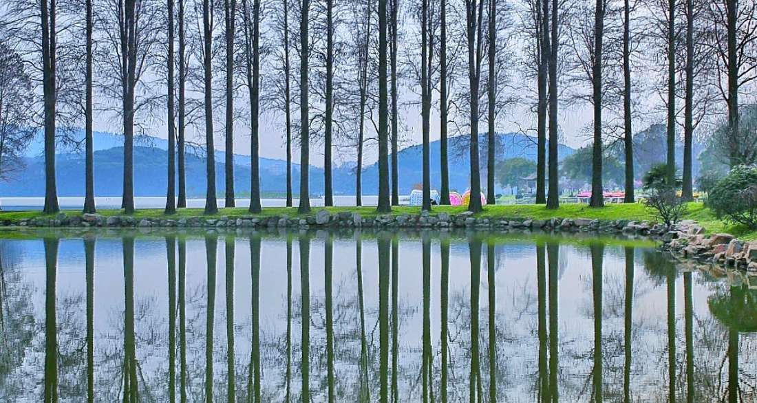 分为四个区域:听涛景区、东湖磨山景区、落雁景区和吹笛景区,四个景区各具特色。
