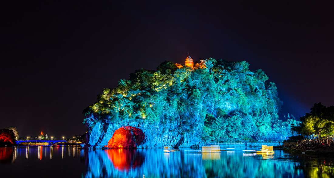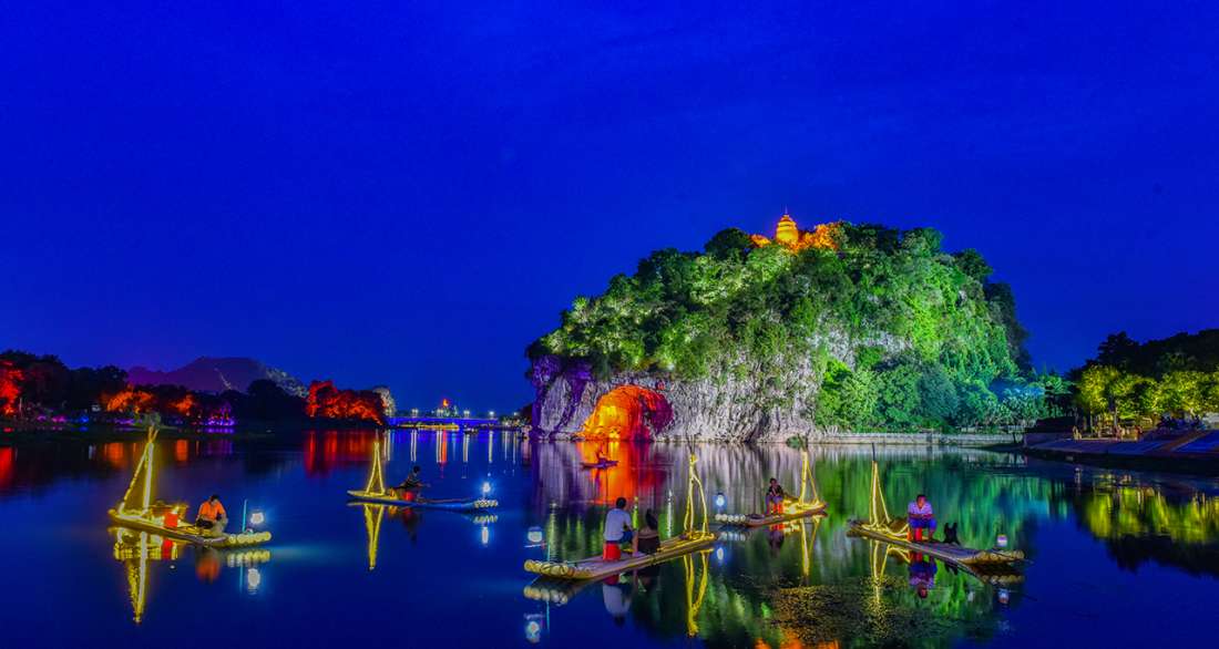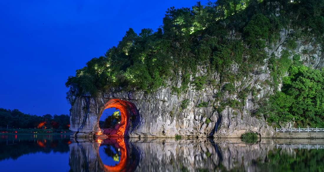 以象鼻山为主体,位于市内桃花江注入漓江处,滨江路的南端,因其山形酷似一头巨象临江汲水而得名。