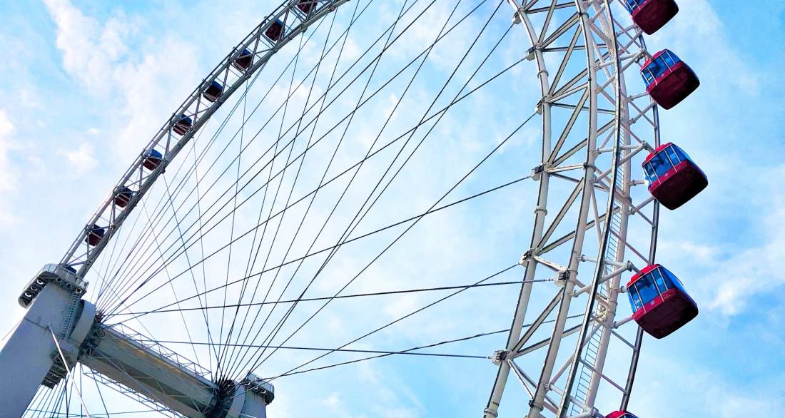 摩天轮旋转一周所需时间为28分钟,到达最高处时,周边景色一览无余,甚至能看到方圆40公里以内的景致。