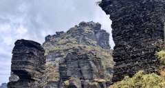 主峰“蘑菇石”是一道著名景观,上大下小,高约十米,在山上矗立了10亿年之久,是拍照留念的圣地。