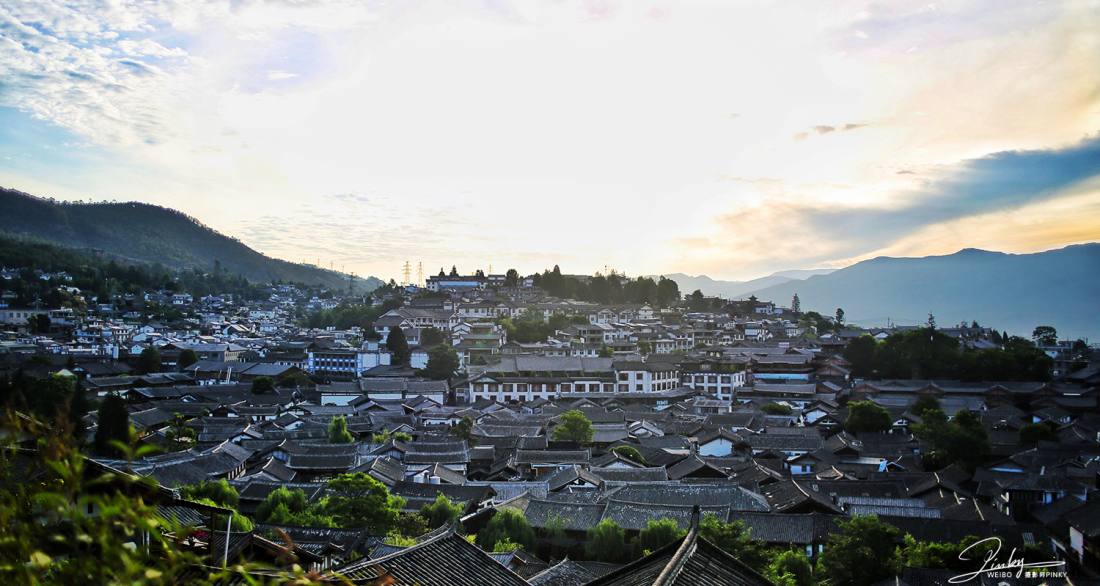 丽江古城在南宋时期初具规模,自明朝时丽江古城称“大研厢”,因其居丽江坝中心,四面青山环绕,一片碧野之间绿水萦回,形似一块碧玉大砚,故而得名。