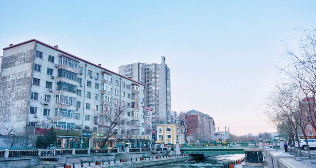 已拥有一百多年历史,林立着众多俄式建筑,包括有名的秋林食品公司大楼、圣阿列克谢耶夫教堂等。