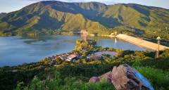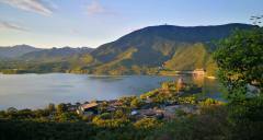水库中上游,两岸有大片台地、坡地,水面平稳,水深变化较小。水面受开阔度、水深和不同环境色彩影响,显现出不同景观效果。如在大坝附近,山高水深,水面倒映山影。而水库上游,水面宽阔、岸坡平缓,视野开阔,在夕阳映照下,远山连绵,近水荡漾。那点缀在远山近水之间的片片果林及点点皇陵,更增添了一层飘忽不定的朦胧色彩。