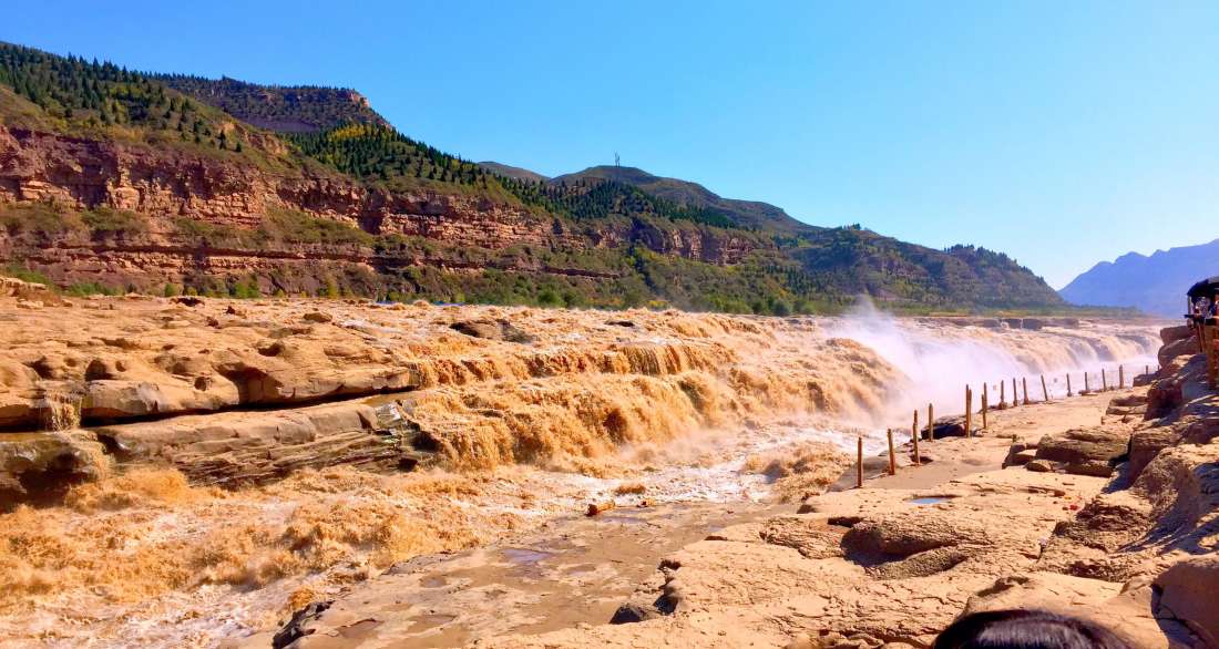“源出昆仑衍大流,玉关九转一壶收”。黄河流经黄士高原,进入秦晋峡谷,河床由四五百米宽忽然收缩成四五十米,犹如巨壶倾汤,壶口缘此得名。