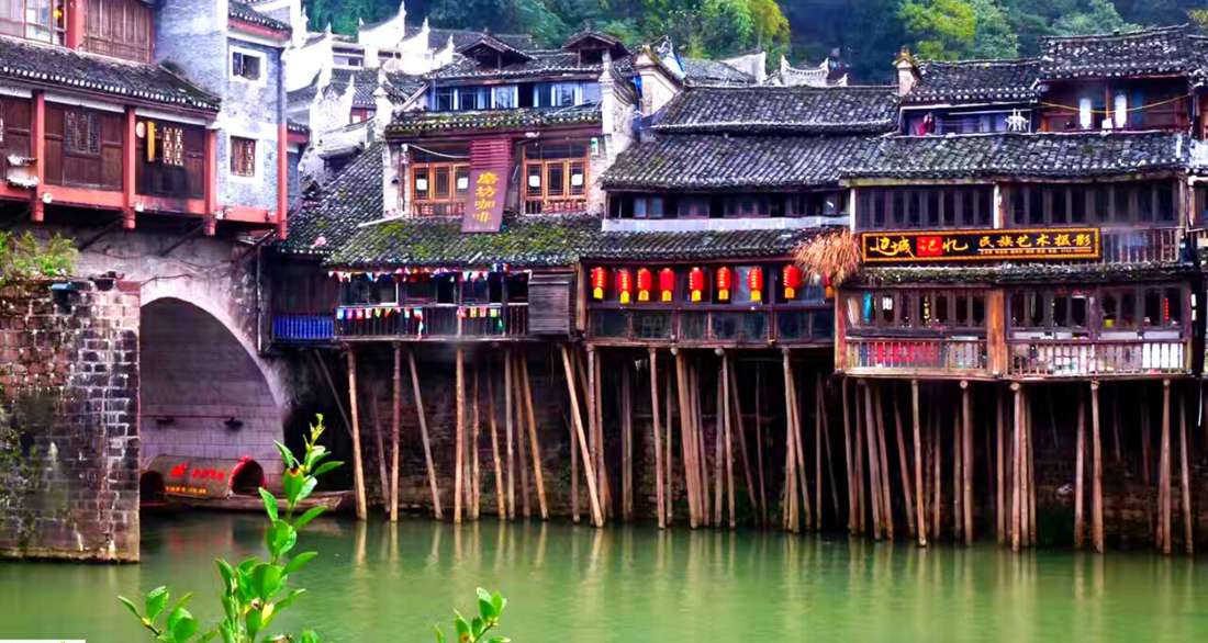吊脚楼是凤凰古城中富有浓郁苗族建筑特色的古建筑之一,也是中国规模最大的吊脚楼群。