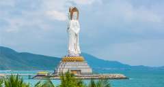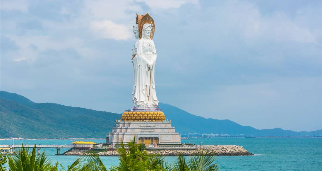 世界上最大的一尊海上观音也坐落在此,像体为观音造型,三面示人,宝相庄严,高108米,造价1.9亿人民币,是闻名全海南的“镇岛之宝”。